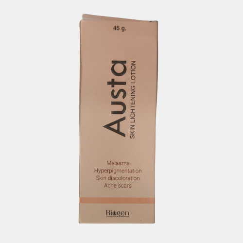 Austa Skin Lightening Lotion is a targeted depigmenting lotion formulated to help reduce melasma, hyperpigmentation, acne scars, and uneven skin tone. Enriched with active ingredients like Hydroquinone and Glycolic Acid, it works by controlling excess melanin production and gently exfoliating dull surface cells to reveal a brighter, more even complexion. Its balanced formula is designed for comfortable daily use, helping improve skin clarity while maintaining moisture — making it ideal for those seeking to fade dark patches and enhance overall skin radiance.