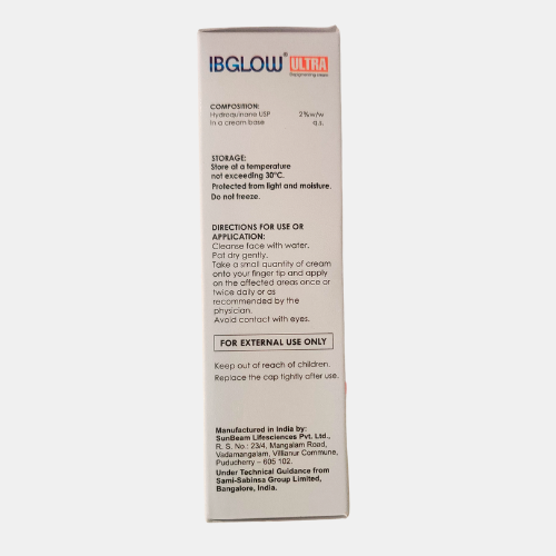 IBGLOW Ultra Cream is an advanced skin-brightening and nourishing formula designed to improve uneven skin tone, dullness, and pigmentation. It helps reduce dark spots, enhances natural radiance, and keeps the skin deeply hydrated. With regular use, the cream supports smoother, healthier-looking, and visibly glowing skin. Suitable for daily use as advised by a dermatologist.
