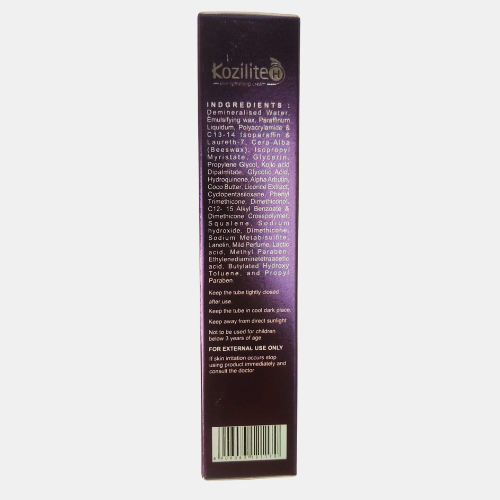 KOZILITE H Cream is a dermatologist-recommended formula used to reduce hyperpigmentation, melasma, dark spots, and uneven skin tone. It helps lighten affected areas, control inflammation, and improve overall skin clarity when used as prescribed.